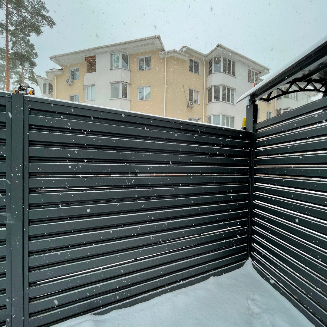Видео обзор готового объекта в Киеве. Забор металлический ГОРИЗОНТ для коттеджа
