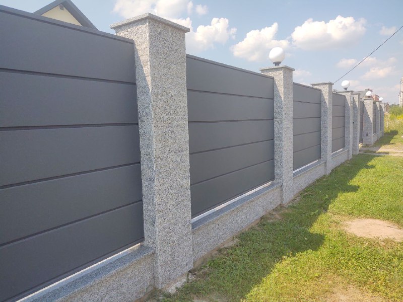 Сучасний суцільний паркан - для цінителів приватності та затишку. Додаткова привабливість цієї моделі полягає в тому, що паркан з обох сторін виглядає естетично і акуратно. Чудовий варіант для реконструкцій бетонних та кам'яних парканів.