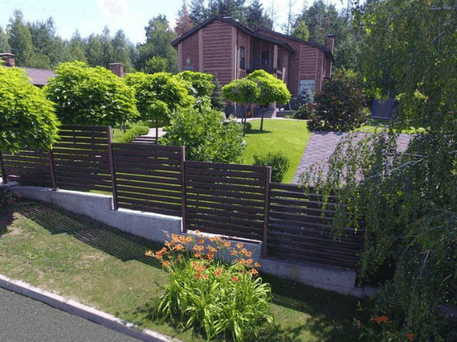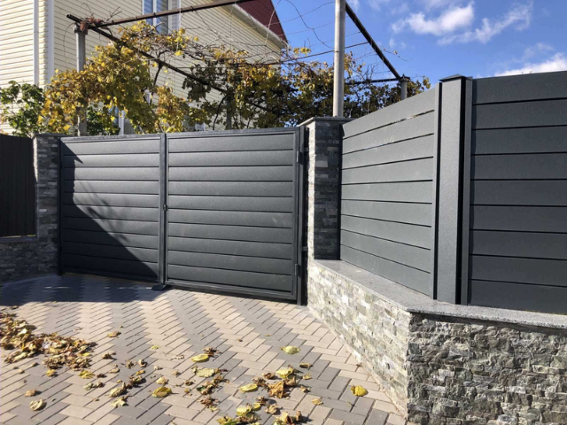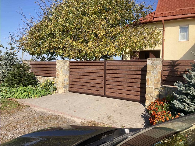 Легкий і провітрюваний паркан, що складається з ламелей, виготовлених зі сталі оцинкованої з полімерним покриттям. Цей вид огорожі забезпечує оглядовість зовнішнього простору, освітленість і провітрюваність ділянки. Жалюзійні секції міцні, для збереження гарного зовнішнього вигляду, не вимагають додаткових витрат.
